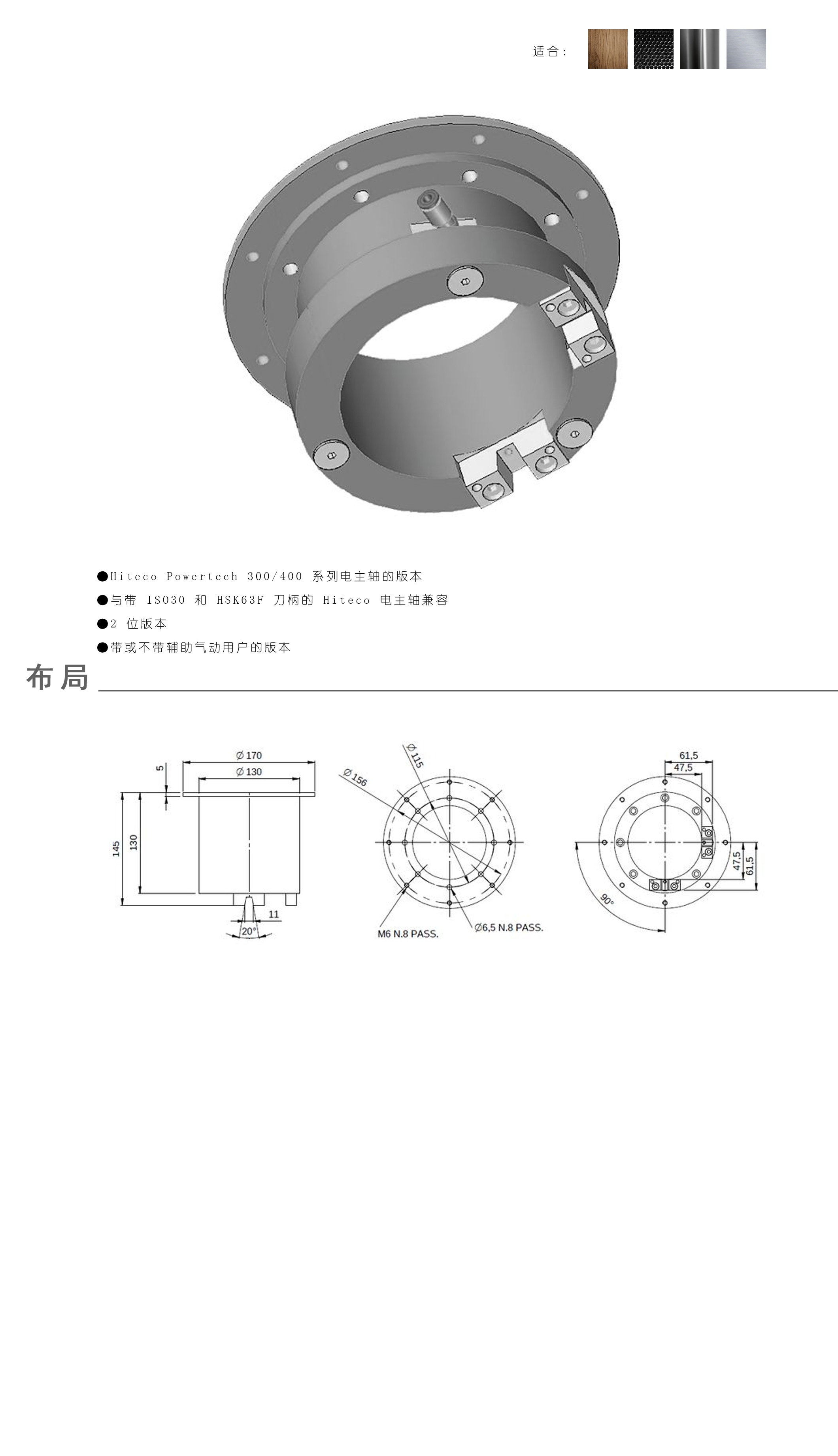 HITECO POWERTECH 300-400 LONG NOSE 法蘭盤 - 2 個(gè)位置